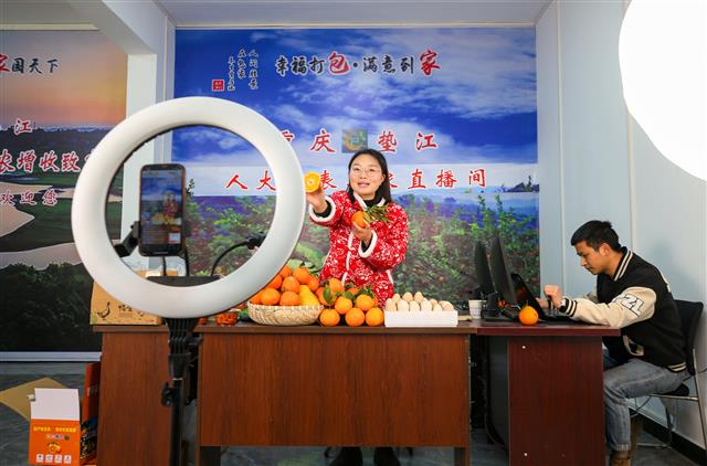 (直播售卖柑橘。资料图)