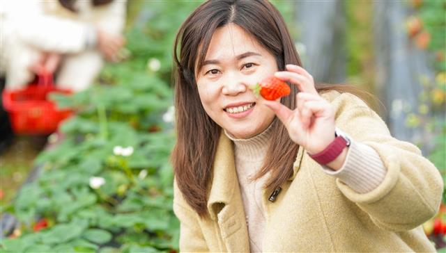 (市民在草莓基地采摘草莓。资料图  龚长浩 摄)