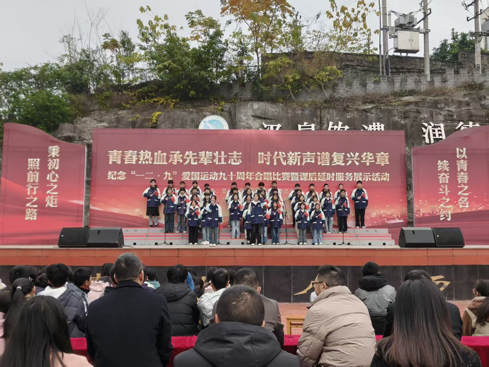 为弘扬“一二·九”爱国运动精神,传承红色基因,凝聚奋进力量。12月8日,垫江五中举行纪念“一二·九”爱国运动九十周年合唱比赛暨课后延时服务展示活动。全校师生齐聚一堂,以歌抒怀,以声传情,共同追忆峥嵘岁月,激扬青春壮志。